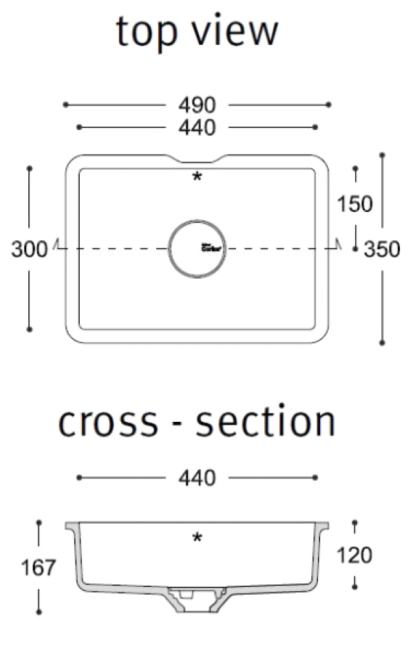 - Sink dimensions: 44x30cm / 49x31cm / 54X32cm